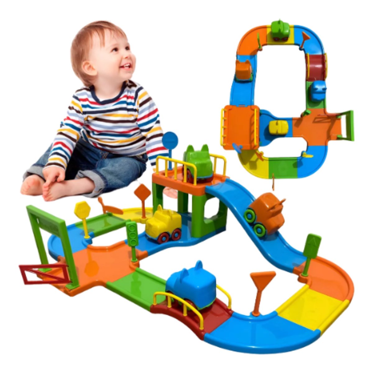 Peças de Encaixe: A montagem da pista é simples, intuitiva e permite que a criança desenvolva habilidades motoras finas e visuais enquanto conecta as partes.